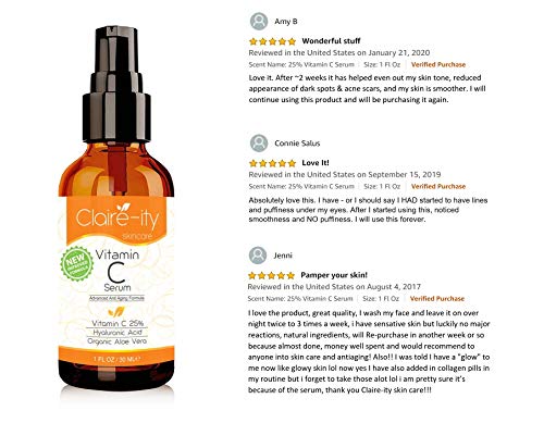 • Claire-ity 25% Vitamin C Serum with Hyaluronic Acid and Vitamin E, Organic Topical Anti-Aging Moisturizing Facial Serum for Face, Neck & Décolleté(1 fl. oz)