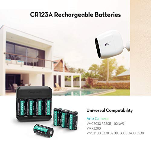 • CR123A Rechargeable Batteries RAVPower [8 Pack 3.7V 700mAh ] Protected Batteries for Arlo Security Wireless Cameras VMC3030 VMK3200 VMS3330 3430 3530 and Flashlight Polaroid Microphone