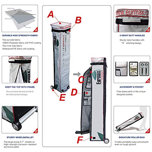 • Eurmax 10'x10' Ez Pop Up Canopy Tent Commercial Instant Canopies with Heavy Duty Roller Bag,Bonus 4 Sand Weights Bags(Gold)