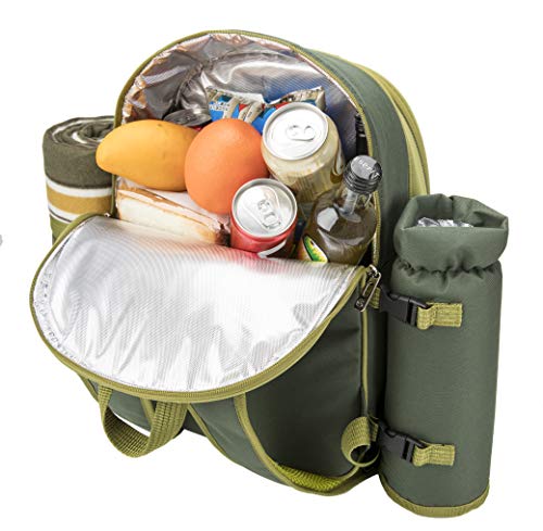 • ALLCAMP OUTDOOR GEAR 2 Person Blue Picnic Backpack Hamper with Cooler Compartment Includes Tableware & Fleece Blanket (Green)