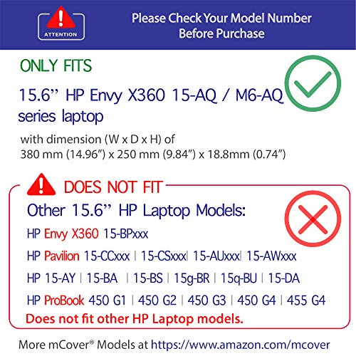 • mCover iPearl Hard Shell Case for 15.6" HP Envy X360 15-AQxxx / M6-AQxxx Series (15-AQ173cl / m6-AQ103dx, etc) Convertible laptops (X360-15-AQ Pink)