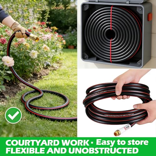 • YASQA Heavy Duty Garden Hose 100 ft 5/8 Inch, Contractor's Leak Proof Durable No Kink Easy Coil Flexible Hose Black & water hose 100ft