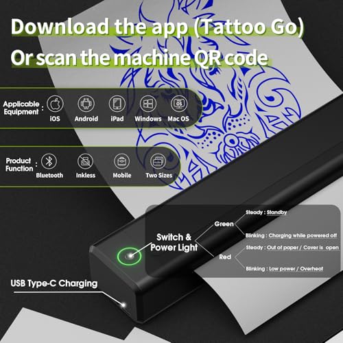 • Filter Tattoo Printer Kit - Tattoo Stencil Printer with 7 Strokes 2.0-4.0mm Tattoo Gun Machine, Extra 1600mAh Power Supply, 20Pcs Tattoo Cartridge Needles for Beginners and Artists (X40 Black)