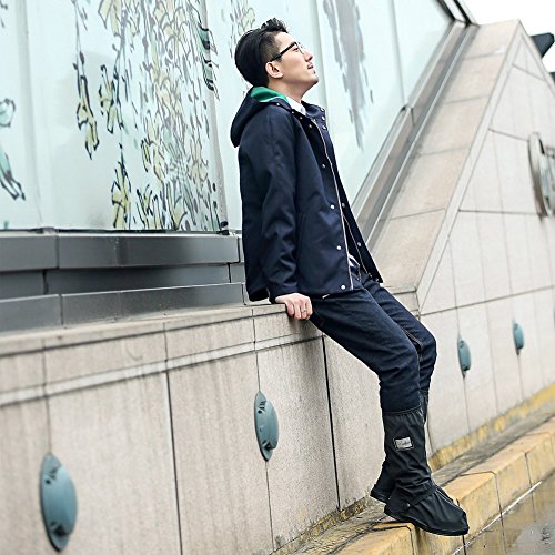 Holyami Waterproof Rain Boots Shoes Covers for Women Men-Black Anti Slip Lightweight Rain Snow Boots Cover with Reflective Strip-Travel Bike Motorcycle Boots Shoe Cover Rain Suit/Gear(1 Pair), Mens