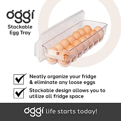 • OGGI Stackable Covered Egg Holder - Kitchen Organization, Fridge Organizer, Food Storage, Clear Stackable Storage Bins, 14 Egg Tray
