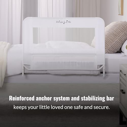 • Dream On Me Lightweight Mesh Security Adjustable Bed Rail for Toddler, Breathable Mesh Fabric, Suitable for All Types Of Beds, Reinforced Anchor System Bed Guard Rail, White