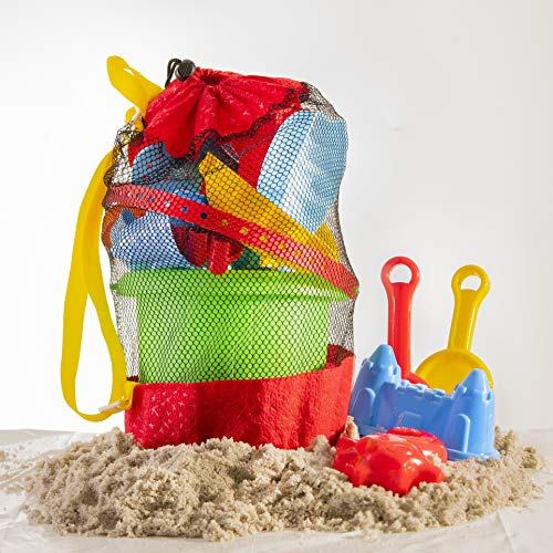 • Prextex 19 Piece Beach Toys Sand Toys Set, Bucket with Sifter, Shovels, Rakes, Watering Can, Animal and Castle Molds in Drawstring Bag