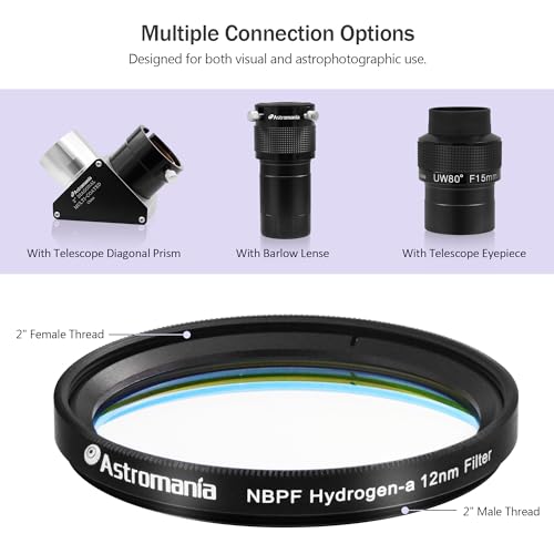 • Astromania 2" Narrowband NBPF Hydrogen-a 12nm Filter - Enhances The Contrast Between Object and Sky - Allows You to Take Images Even Under Urban Skies