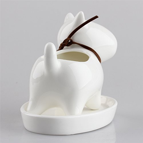 • Little Dog White Ceramic Succulent Plant Flower Pot Flowerpot Planter Pots Milky Cream White with Tray Neck with Bell Simple Modern Dog Design Weaving Tail Small 4.5 x 2.36 x 3.46 inches