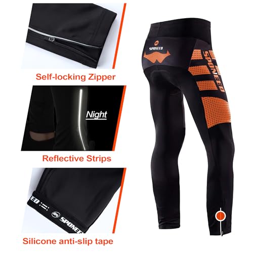 • sponeed Men Biker Pants Spinning Padded Cyclist Bicycle Leggings Cycling Bottoms Riding Indoor US M Orange