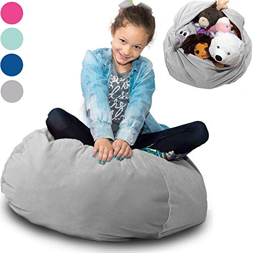 BabyKeeps Stuffed Animal Storage Bean Bag Chair Cover ❤️ “SOFT ’n SNUGGLY” Corduroy Kids & Toddlers Prefer Over Canvas - Replace Plush Toy Hammock or Net - Store Blankets & Pillows Too - Large, 4 Colors, Grey