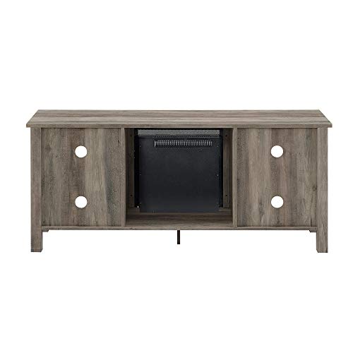 • Walker Edison Rustic Wood and Glass Fireplace Stand for TV's up to 64" Flat Screen Living Room Storage Cabinet Doors and Shelves Entertainment Center, 24 Inches Tall, Grey Wash (AZ58FP4DWGW)