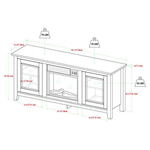 • Walker Edison Rustic Wood and Glass Fireplace TV Stand for TV's up to 64" Flat Screen Living Room Storage Cabinet Doors and Shelves Entertainment Center, 58 Inch, Traditional Brown