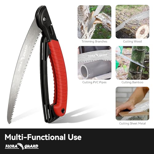 • FLORA GUARD 10-Inch Folding Hand Saw, Heavy Duty Pruning Saw with Multi-Level Razer Teeth for Wood Cutting, Tree Trimming, Professional Camping Gardening Tools