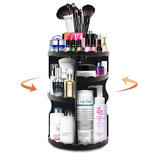 • PlusMart Makeup Organizer, Cosmetic Organizer Adjustable,360 Degree Rotating Makeup Organizer Countertop Makeup Storage Box Black Large Capacity for Brushes Toner Creams Lipsticks