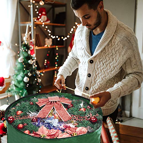 ProPik Christmas Wreath Storage Bag 30" - Garland Holiday Container with Clear Window - Tear Resistant Fabric - 30" X 30" X 8" (Green), 30 Inch