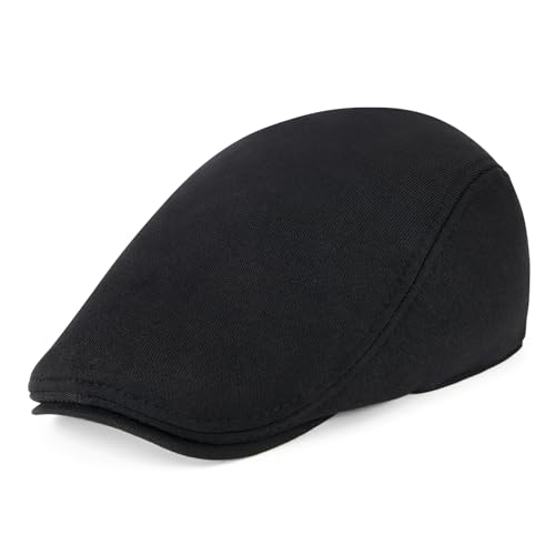 VOBOOM Men's Cotton Flat Ivy Gatsby Newsboy Driving Hat Cap (Style2-Black), One Size
