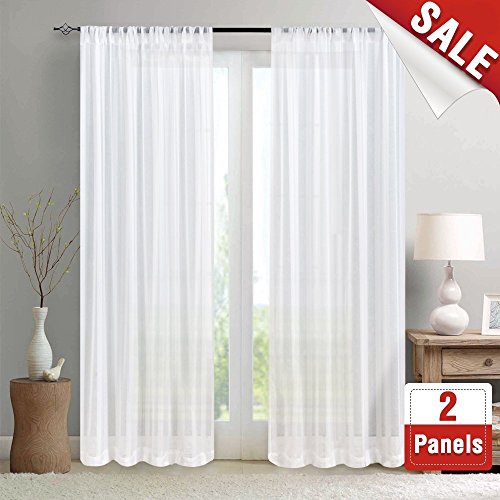jinchan Striped White Sheer Curtains Bedroom 63 inches Long White Window Curtain Living Room Drapes Rod Pocket 2 Panels, *Striped|white