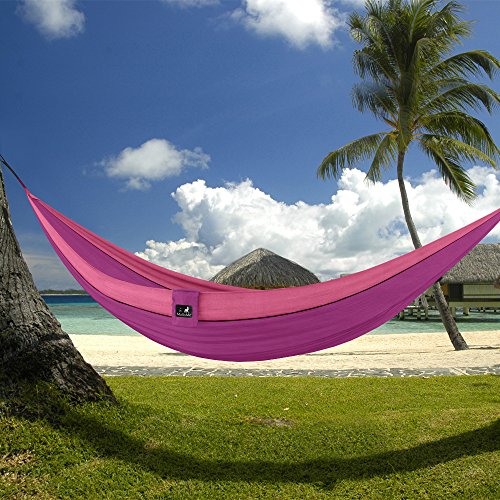 MalloMe Double & Single Portable Camping Hammock - Parachute Lightweight Nylon with Hammok Tree Straps Set- 2 Person Equipment Kids Accessories Max 1000 lbs Breaking Capacity - Free 2 Carabiners, Fushia / Pink