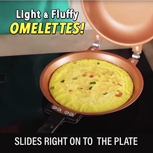 • Gotham Steel Double Pan – Nonstick Copper Easy to Flip Pan with Rubber Grip Handles for Fluffy Pancakes, Perfect Omelets, Frittatas, French Toast and More! Dishwasher Safe