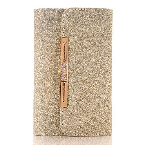 • MIYA LTD Wallet Phone Case with Detachable Magnetic Back Case Leather Women Stylish Bling Shiny Multi Envelope Wristlet Handbag Clutch Wallet Cover& Metal Chain for Samsung Galaxy S9 Plus -Gold