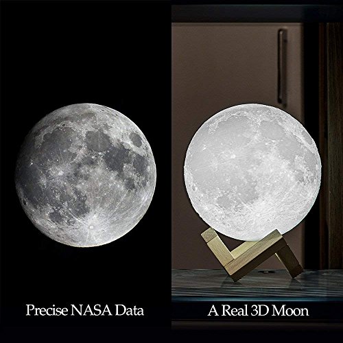 • THE RESET Moon LAMP Lighting Night Light LED 3D Printing, Warm and Cool White Dimmable Touch Control Brightness USB Charging, Rechargeable Home Decorative Lamp, Wooden Stand Creative Gift 5.9 Inch