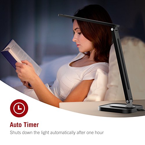 • TaoTronics LED Desk Lamp with USB Charging Port, (2700 - 6500K) 5 Color Temperatures & 5 Brightness Levels, Soft Night Light Mode, 1 Hour Timer, 12W, Black (Certified Refurbished)