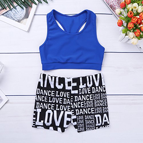 MSemis Girls' Kids 2-Piece Sport Dance Outfit Crop Top with Booty Shorts Gymnastics Leotard Dancing Swimwear Blue & Black 5-6