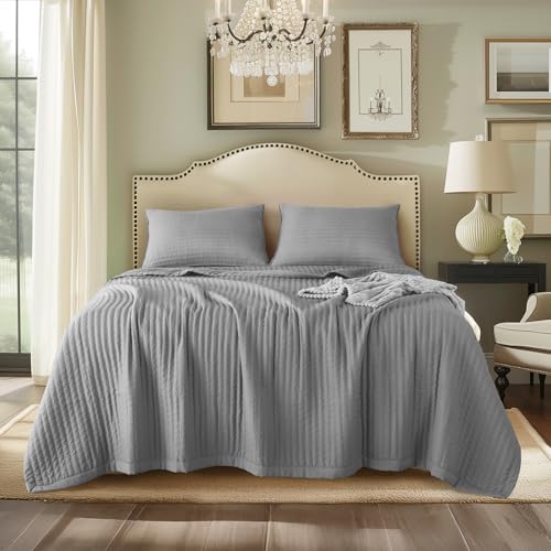 • KASENTEX Quilt Mini Set-Stone Washed-Super Soft Bedspread-Light Weight-White Down Alternative Microfiber Fill-Machine Washable-Solid Colors, Full/Queen + 2 Shams, Grey