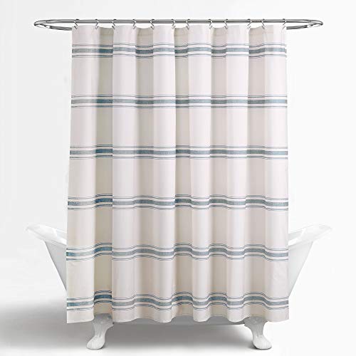 Lush Decor Farmhouse Stripe Cotton Shower Curtain, 72" W x 72" L, Blue - Striped Bathroom Curtain - Fabric Shower Curtains - Farmhouse Bathroom Decor, 72"W x 72"L (Pack of 1)