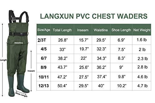• LANGXUN Chest Waders for Kids, Lightweight and Breathable PVC Fishing Waders for Toddler & Children, Waterproof Hutting Waders for Boys and Girls, Age 2-13 (12/13 Year Old Big Kid)