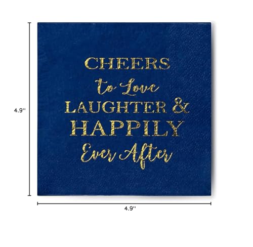 Crisky Bridal Shower Napkins Disposable Cocktail Napkins 3-Ply Gold Foil Blue Paper Beverage Napkins for Engagement Party Decorations & Wedding Shower, BlueGold, 1 Count (Pack of 1)
