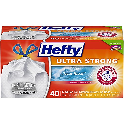 • Hefty Ultra Strong Kitchen Trash Bags 13 Gallon Garbage Bags - Clean Burst - Odor Control - Drawstring - 40 Count