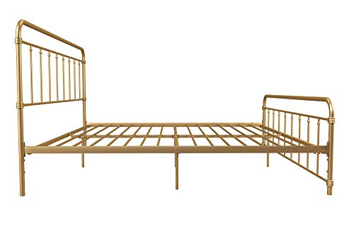 • DHP Winston Metal Bed Frame, Multifunctional Piece with Adjustable Heights for Under Bed Storage, Gold - King