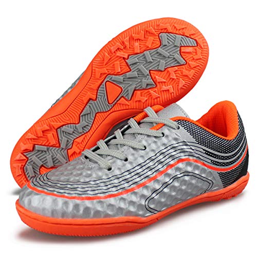 • Hawkwell Kids Indoor Comfortable Soccer Shoes(Toddler/Little Kid/Big Kid), Silver PU, 2 M US