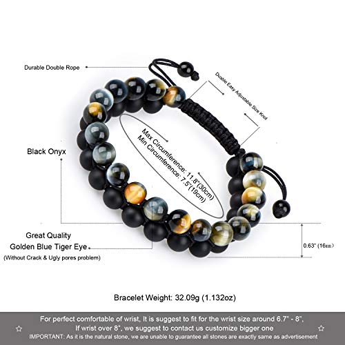 HASKARE Tiger Eye Bracelet Mens Womens Natural Stones Lava Tiger Eye Beads Bracelet Adjustable 7.5"-11", couples, Blue, Tiger eye and black onyx 8mm, for wrist size 7.2"-8.2" (18.2cm-21cm)