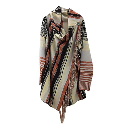 XOWRTE Women Blouse Tassel Patchwork Gradient Fringe Cardigan Tops Sweater Coat, womens, Coffee
