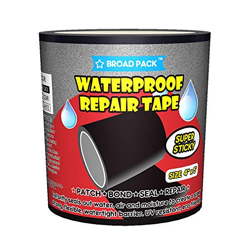 • BROADPACK Rubberized Waterproof Repair Tape, Stop Leakage Seal Tape, Permanent Strong Adhesive Rescue Tape, UV Resistant, Environmentally Friendly, VOC-Free, (4 inch x 5 feet Black)
