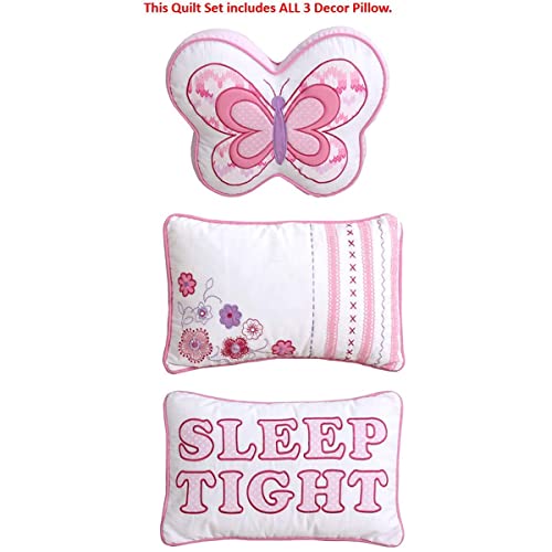 • Cozy Line Home Fashions Pink Butterfly Knit 100% Cotton Reversible Quilt Bedding Set, Coverlet, Bedspreads (Twin - 5 Piece: 1 Quilt + 1 Standard Sham + 3 Decorative Pillows)