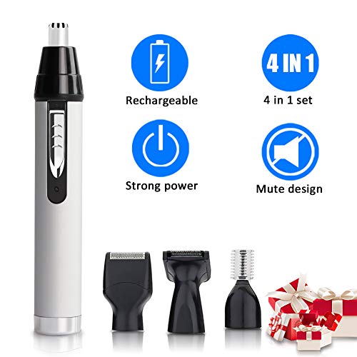 • Nose Hair Trimmer - Electric Eyebrow and Facial Hair Clippers 4 in 1 Rechargeable Mute Motor Waterproof Ear and Nose Hair Trimmer Double-Edge Stainless Steel Blades Tool, Christmas Gift for Men