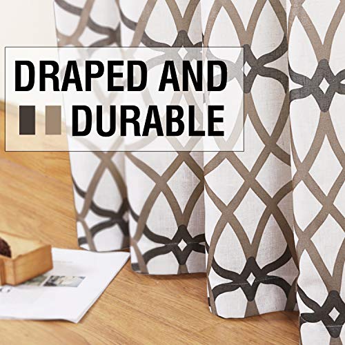 • H.VERSAILTEX Light Filtering Made of Line Mixed Rich Material Linen Curtains Privacy Protecting Soft Drapes with Nickel Grommet Top 52 x 84 Inches Long, Set of 2 Panels, Taupe and Brown Geo Pattern