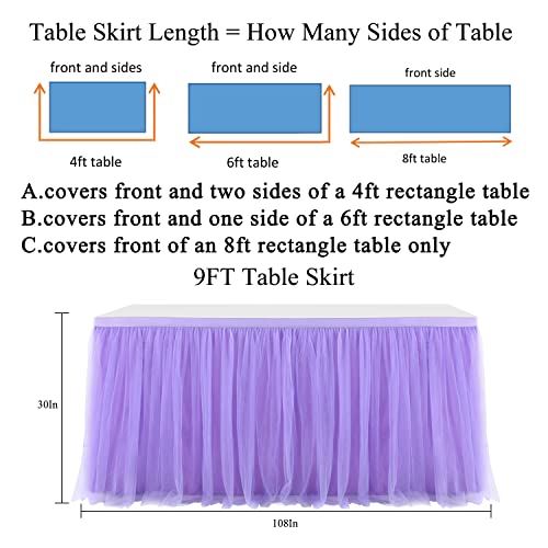 Suppromo Purple Tulle Table Skirt Baby Shower Table Cloth for Rectangle Tables or Round Tables Purple Tutu Table Skirt for Girls Mermaid Elephant Butterfly Birthday Party Cake Dessert Decorations, 108" x 30" (9FT)
