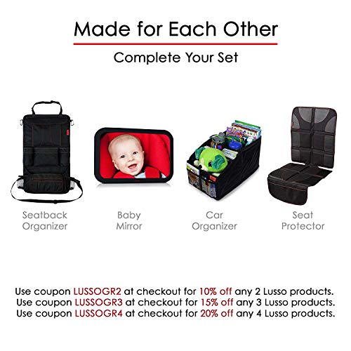 • Lusso Gear Seat Back Protectors (2 Pack) - Car Kick Mats with Odor Free, Premium Waterproof Fabric, Reinforced Corners to Prevent Sag, and 3 Mesh Pockets for Great Storage