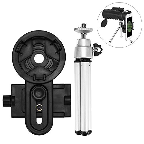• occer Universal Telescope Smartphone Adapter with Tripod Mount,Cell Phone Adapter Compatible with Monocular,Binoculars,Spotting Scopes, Microscope & Image Capturer Support Eyepiece Diameter 26 to 46mm