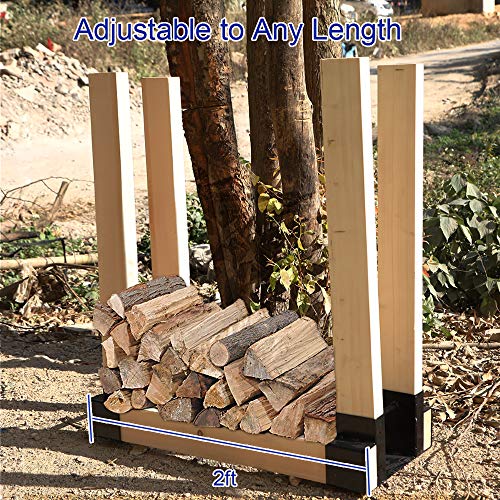 MOFEEZ Outdoor Firewood Log Storage Rack Bracket Kit,Fireplace Wood Storage Holder-Adjustable to Any Length, Black