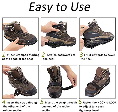 • Ice Cleats Crampons Anti Slip Shoe Spikes for Snow Ice Cleats for Shoes and Boots Men Women Winter Walking Non-Slip 24 Studs Stretch Rubber Footwear