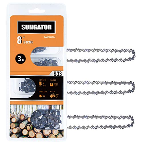 • SUNGATOR 3-Pack 8 Inch Chainsaw Chain SG-S33, 3/8" LP Pitch - .050" Gauge - 33 Drive Links Compatible for Chicago, Earthwise, Greenworks and More