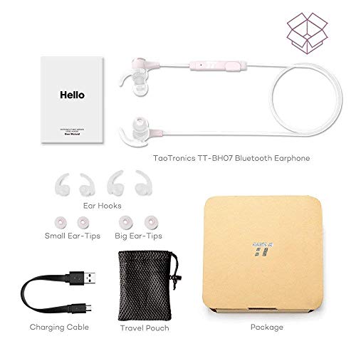 • Bluetooth Headphones TaoTronics Wireless 5.0 Magnetic Earbuds Snug Fit for Sports with Built in Mic TT-BH07 (IPX6 Waterproof, aptX Stereo, 9 Hours Playtime) Pink (Certified Refurbished)