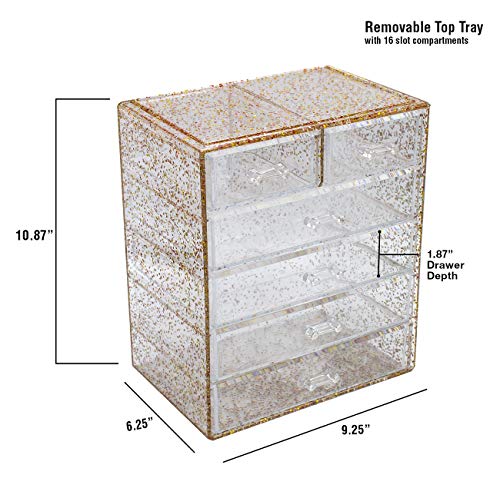 • Sorbus Glitter Cosmetic Makeup and Jewelry Storage Case Rose Gold Display - Spacious - Great for Bathroom, Dresser, Vanity, and Countertop (4 Large, 2 Small Drawers, Glitter)