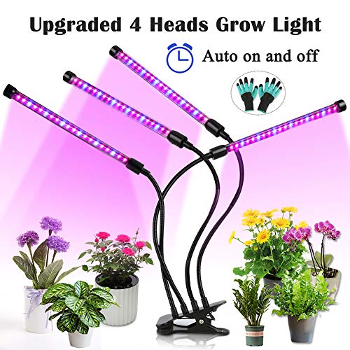 • Upgraded Grow Light, 4 Heads 72pcs LEDs Plant Light for Indoor Plants, Auto ON/Off Full Spectrum Plant Grow Light, 4/8/12H Timer 5 Dimmable Levels Growing Lamp for Garden Seedling Herbs Succulent